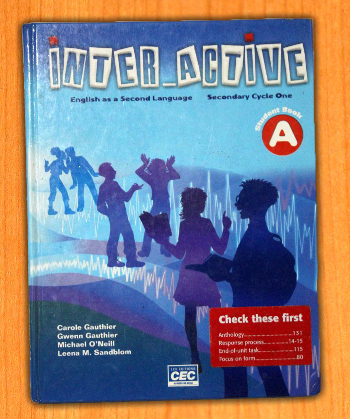 Mettez-vous a l'anglais! Inter_Active is an ESL series designed for students in the first cycle of Secondary school. In step with the reform,the material develops the ESL and Cross-Curricular Competencies with the Broad Areas of Learning as its backdrop. As the title suggests, Inter_Active encourages students to participate actively and offers them numerous opportunities to take ownership of their learning. It also provides both students and teachers with the support necessary to make the reform a reality in the classroom.